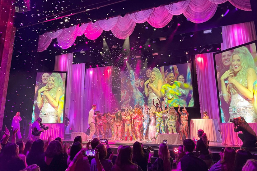 This year’s Send Nudes event was held at the prestigious London Palladium, and in addition to Sophie painting live on stage and interviewing a selection of past models, the night once again concluded with a celebratory naked catwalk featuring 50 painted ladies taking to the stage. The sheer size and scale of the event, in contrast to the very first offering in 2019, highlights just how much of an impact Sophie has made via her art and her community during her time painting nude art and promoting body positivity. A pictorial essay of our night at the Palladium can be located here.